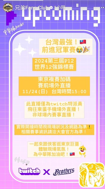 標題[分享] 12強 冠軍賽加碼 賽前場外直播