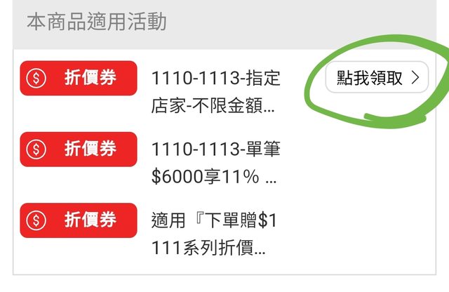 使用7-11 OP會員結帳前領取全站折價券(綠框處) (折價券使用期限11/10至11/13)