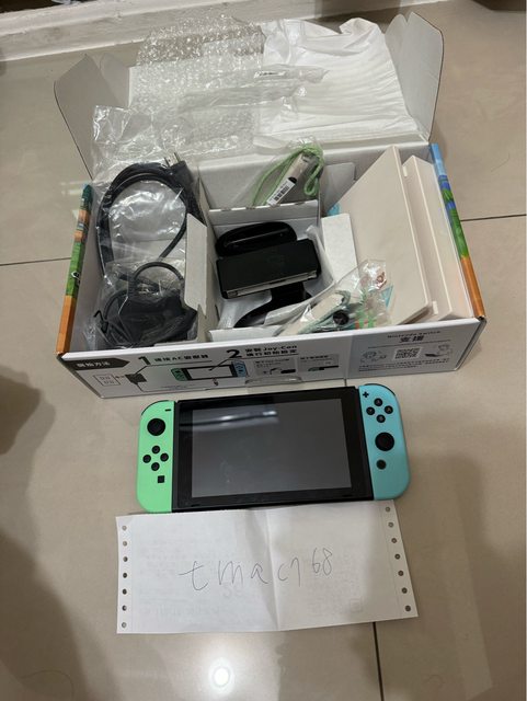★【物品名稱】:售switch 電力加強版主機(動物森友會特仕機),盒裝配件齊全(內