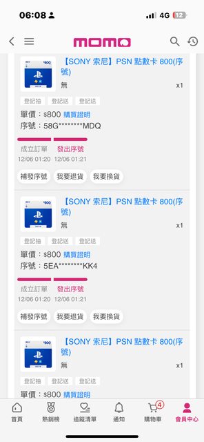 ★【物品名稱】:PSN點數卡 800*4