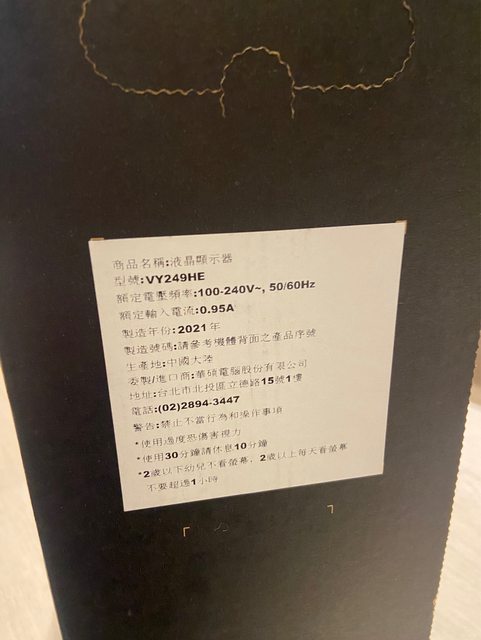 ◎硬體型號: ASUS VY249HE 24吋螢幕