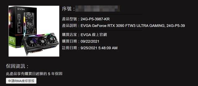 ◎硬體型號:EVGA RTX 3090 FTW3 Ultra