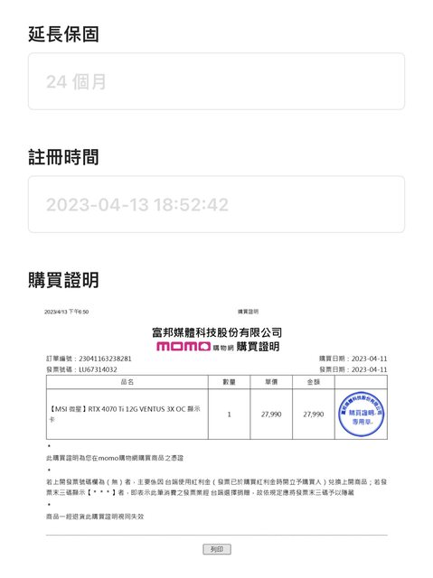 (請附上 1.實物照片 2.購入或保固證明)