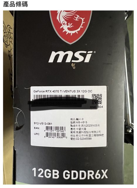 標題[賣//] [賣/台中/面交] 微星 4070Ti Ventus 3X