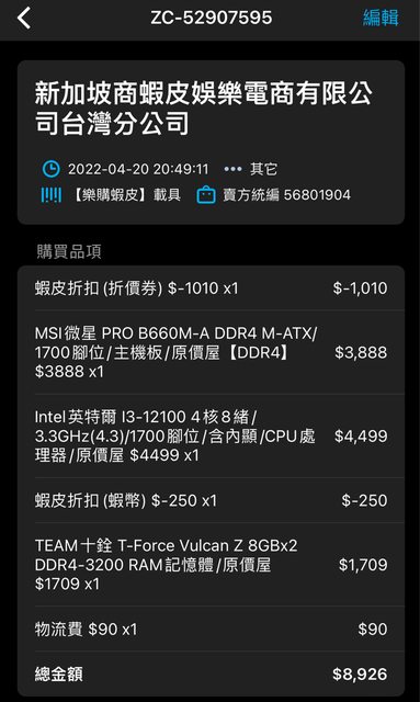 ◎硬體型號: 十銓 vulcan z ddr4 16gb(8x2)