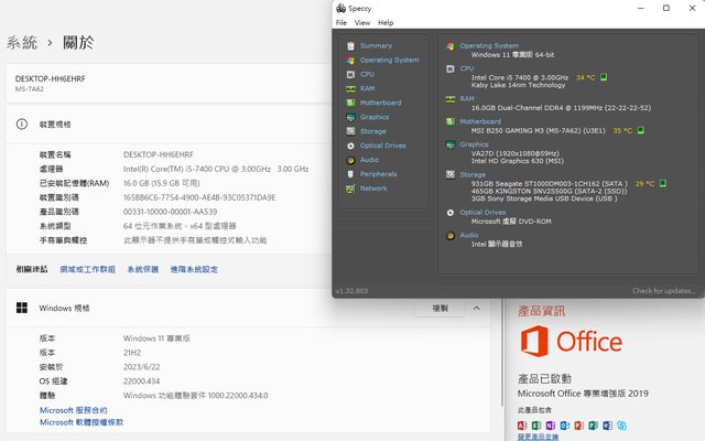 1.除了記憶體外其餘皆過保,購買時間約2018 ,系統為win10專業版含office 2019