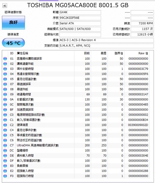 ◎硬體型號: TOSHIBA 8TB 企業碟 (MG05ACA800E)