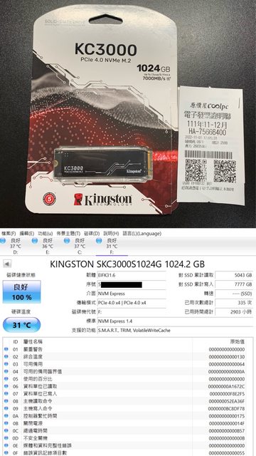 標題[賣/台中/皆可] 金士頓kc3000 1tb