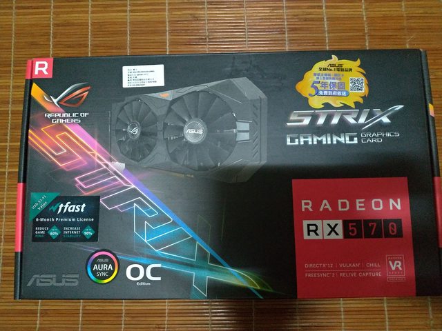 1. AMD R5 3600 盒裝含原廠風扇 2. ASUS ROG-STRIX-RX570-O4G-GAMING