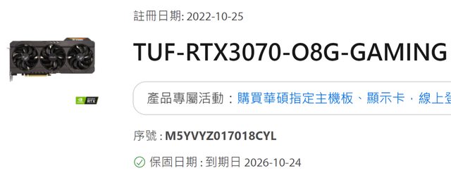 ◎硬體型號: TUF3070O8G 保固到2026.10