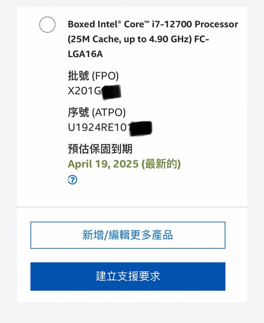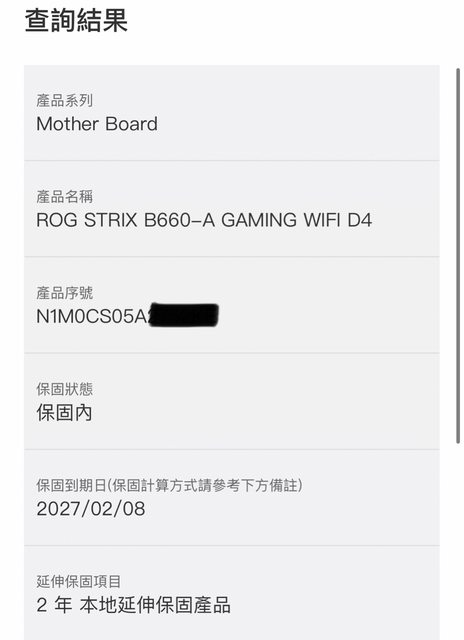 1. 處理器保固至2025/4,主機板保固至2027/2