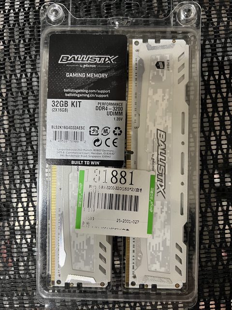 1. 美光 Micron Ballistix Sport DDR4 3200 16G*2