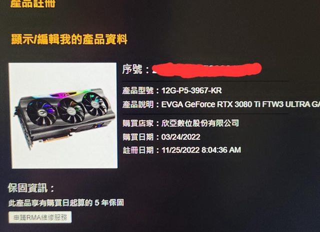 1. 購買日期: 03/24/2022 無挖礦純遊戲使用, 放外接盒給筆電用, 使用率低故出售.