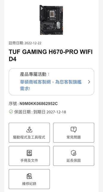 標題[賣/全國/皆可] 主機板ASUS TUF H670 WIFID4華碩
