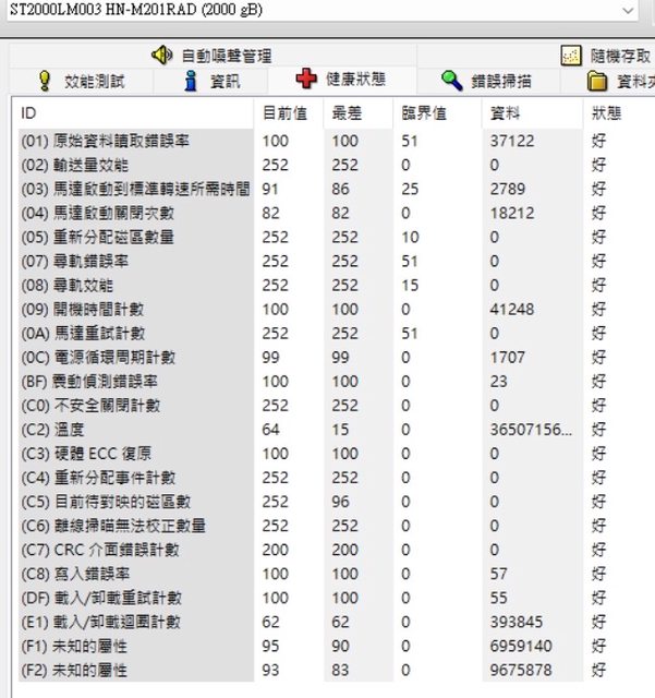 ◎硬體型號: 三星 ST2000LM003 2TB