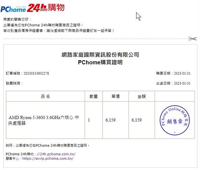 1.2021/01/31 PChome購買,保內