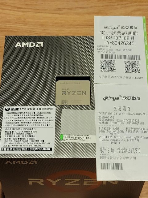 標題[賣/台北/皆可] AMD Ryzen 9 3900X 白金統治者