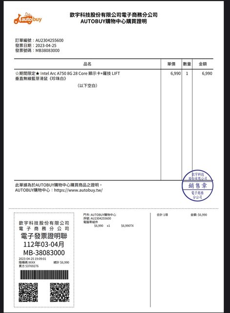 ◎硬體型號:售出 INTEL ARC A750 8G 顯示卡