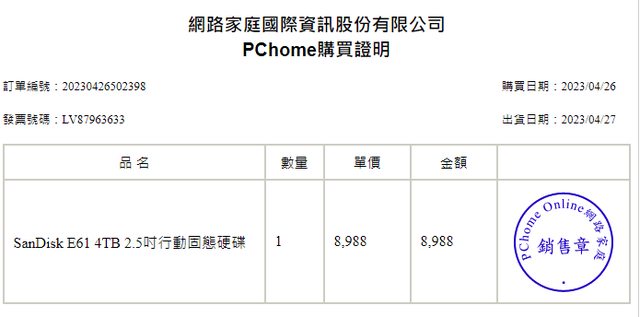 ◎硬體型號: SanDisk E61 4TB 2.5吋行動固態硬碟