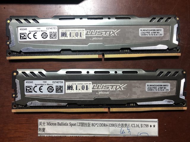d. 美光Ballistix DDR4 Sport LT 3200 8G*2(已預定)