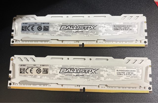 5.美光 Ballistix Sport LT 白 DDR4-3200-16G *2 (BLS16G4D32AESC) [已售出]