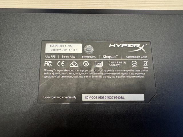 ◎硬體型號: HyperX Alloy FPS機械式鍵盤 青軸