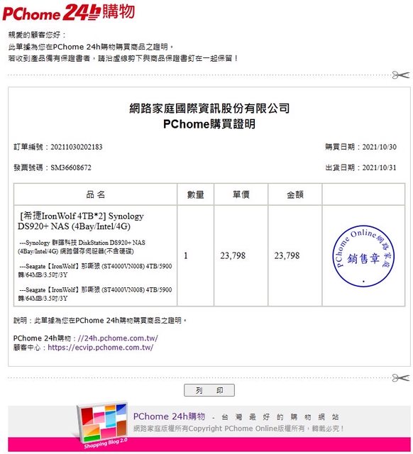 ◎硬體型號: synology NAS ds920+,4TB納嘶狼*2