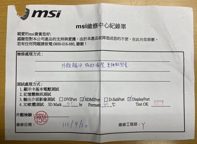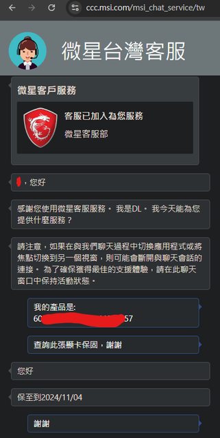 2. 半年前6600XT出保升級為此卡(該RMA單據已丟) 保固接續舊卡到2024/11/4