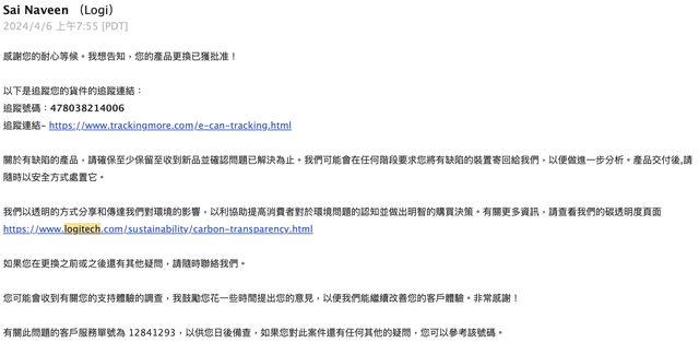 發票上的品項為白色,因RMA時無白色現貨,故更換為黑色