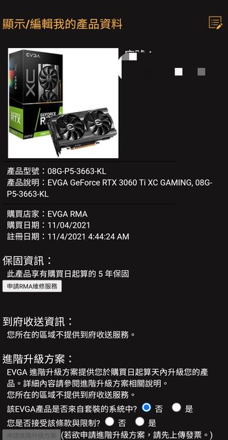 2.EVGA 購買於2021/11/04
