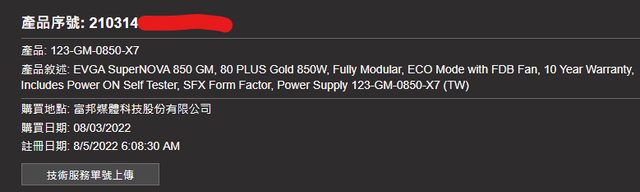 3.2022年8月3日購入,保固至2032年8月3日、已註冊,原廠線材都在