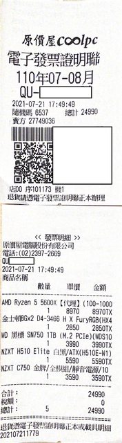 2.2021年7月20日購於NZXT官方蝦皮,原NZXT N7 B550壞掉送修升級的RMA品,確認5年保