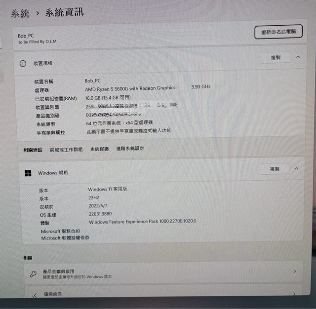 ◎硬體型號: 5600g 華擎a520m-hvs 16g ram(8*2) 512g ssd(intel 670p)