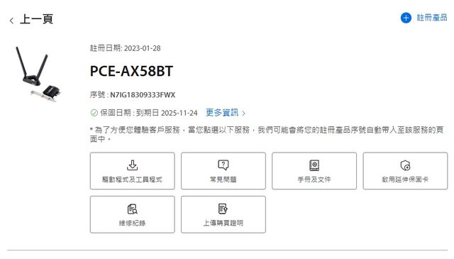 ◎硬體型號: ASUS AX58BT PCIE無線網卡