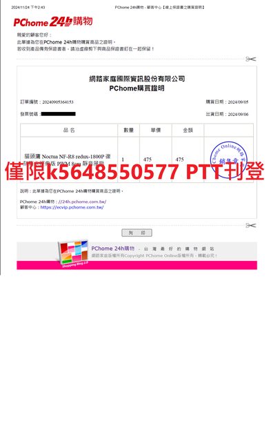 B+C.今年9月PCHOME購買,原廠保固6年內,會提供"購買證明" 電子檔,盒裝螺絲完整(原