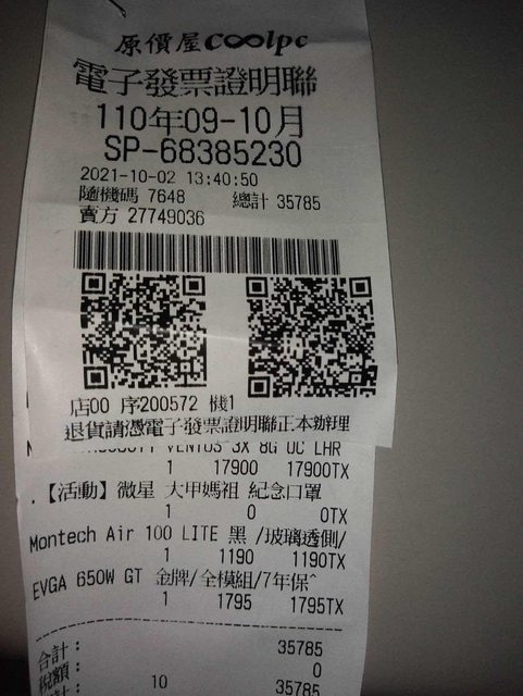 2021/10/02原價屋組裝購入,已註冊4年保固至2025/10/02。