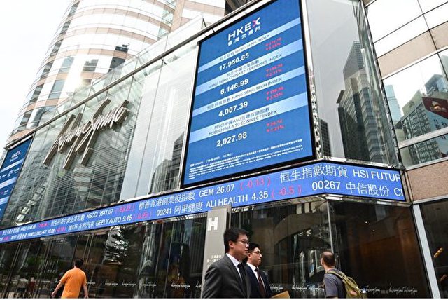 圖為2023年8月18日香港交易所。(郭威利/大紀元)