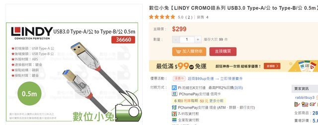標題[交易] 售_全國_超商 LINDY USB3.0+電訊分離線