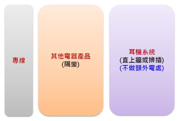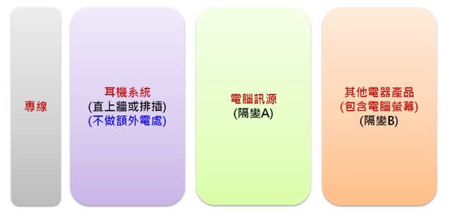 耳機(音響)迴路 -> 直上牆壁或排插(不做其他電源處理)