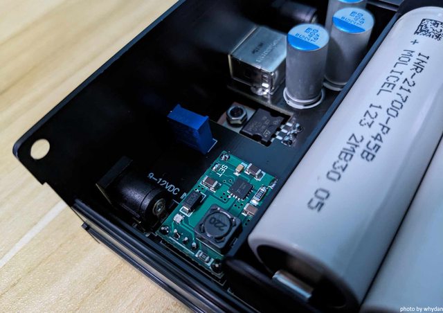 背板,輸出主要分為5.5/2.1跟USB TypeA,微調用的VR跟輸入