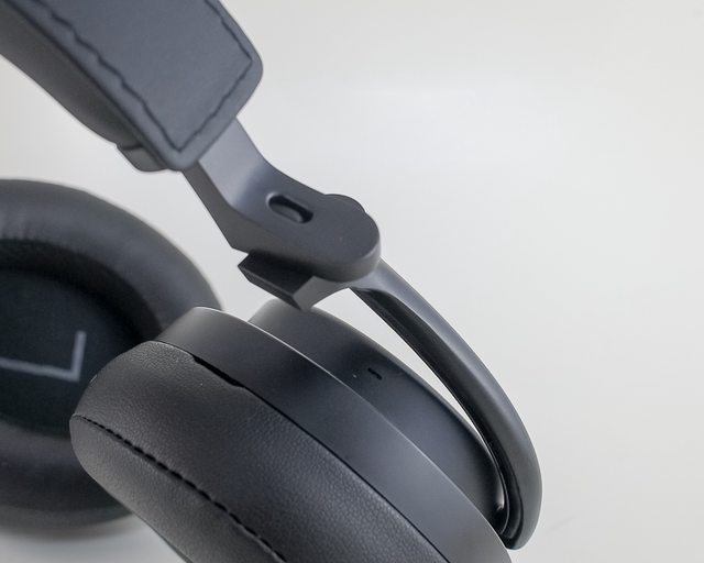 屬支撐臂能旋轉 90 度,讓耳機能夠打平放置,旋轉的阻尼感稍強。