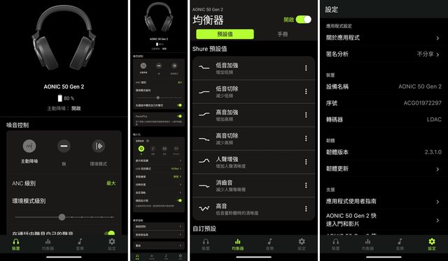 在成像部分 AONIC 50 Gen 2 則有相當出色的表現,維持 Shure 家耳機一貫穩定且精準
