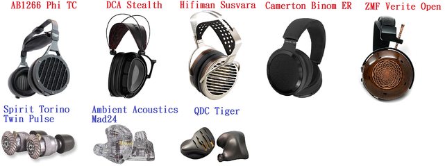 耳罩:Abyss 1266 Tc、Hifiman Susvara、DCA Stealth、Camerton Binom ER、ZMF