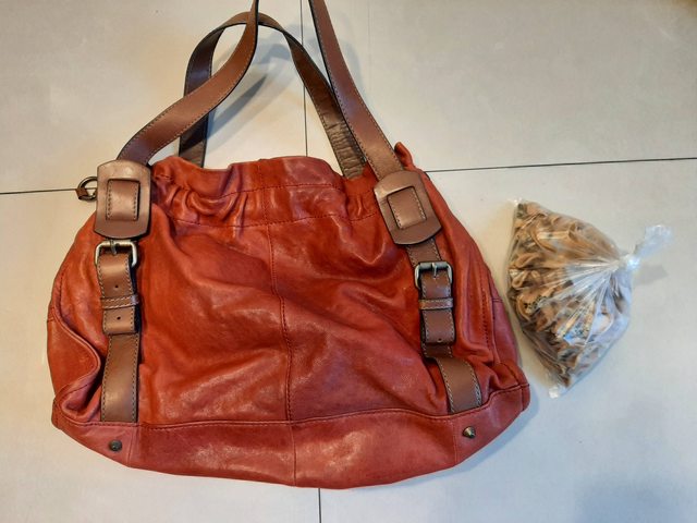 1.橘紅色真皮大包,二手有使用痕跡,不介意者再來信