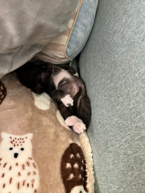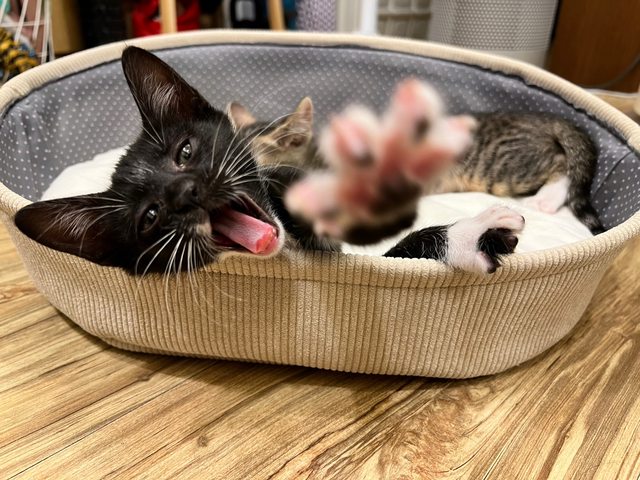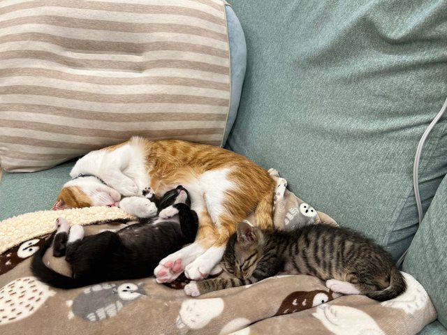 三月中的時候整窩沒開眼的小貓被撿到,由好心的中途親手奶大