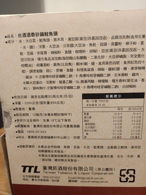 標題[贈送] 台酒 冷凍砂鍋魚頭