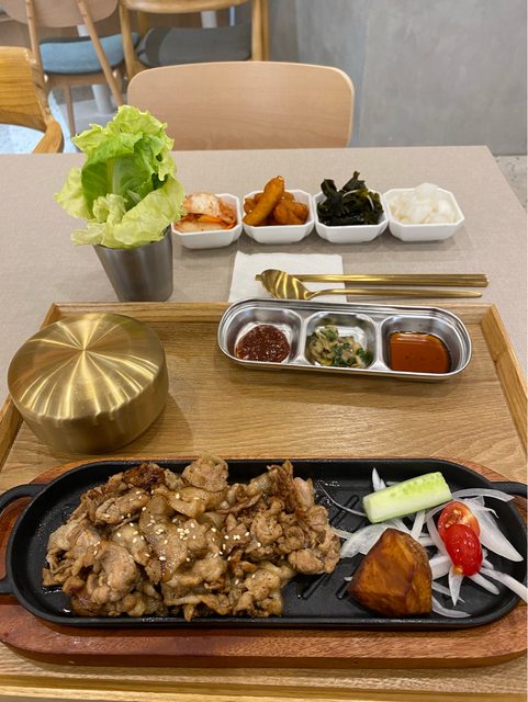 套吃起來很飽。生菜很乾淨新鮮。醬料盤還有小菜都可以續。可愛店員妹妹會幫你送上。