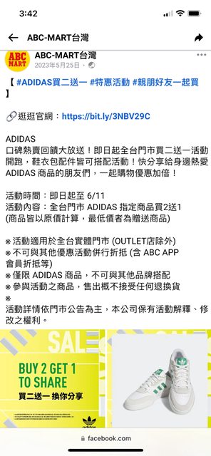 小弟最近需要買拖鞋,剛好最近去ABC-MART看到愛迪達系列拖鞋買二送一