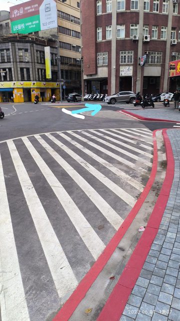 : 反而把人行空間改劃設為槽化線區,不僅行人不能走、車子不能行,但汽機車在此右轉,