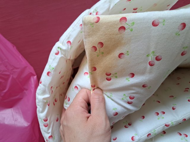 1.床圍有污漬如照片,當初收納前已清洗乾淨,使用前請再清洗喔!